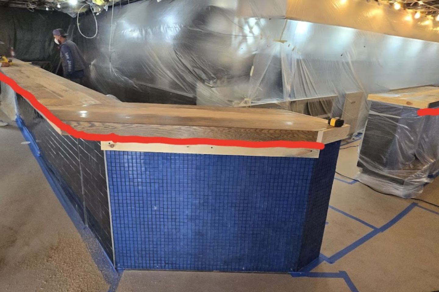 Once cured, the transformation was dramatic. The bar top now features a sleek finish that resists scratches, moisture, and stains — perfect for a high-traffic Miami restaurant.
